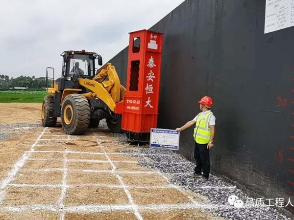 2020年6月11日,信梧一期總監(jiān)辦督促一總包部采用信梧路品質(zhì)工程示范創(chuàng)建主要措施,在涵背回填過程中采用高速液壓夯實(shí)機(jī)進(jìn)行補(bǔ)強(qiáng)夯實(shí)。在K9+932通道涵背回填實(shí)行"五專"施工即采用專門材料、專門壓實(shí)、專門的施工隊(duì)伍、專門的監(jiān)理人員和進(jìn)行專門的檢測。